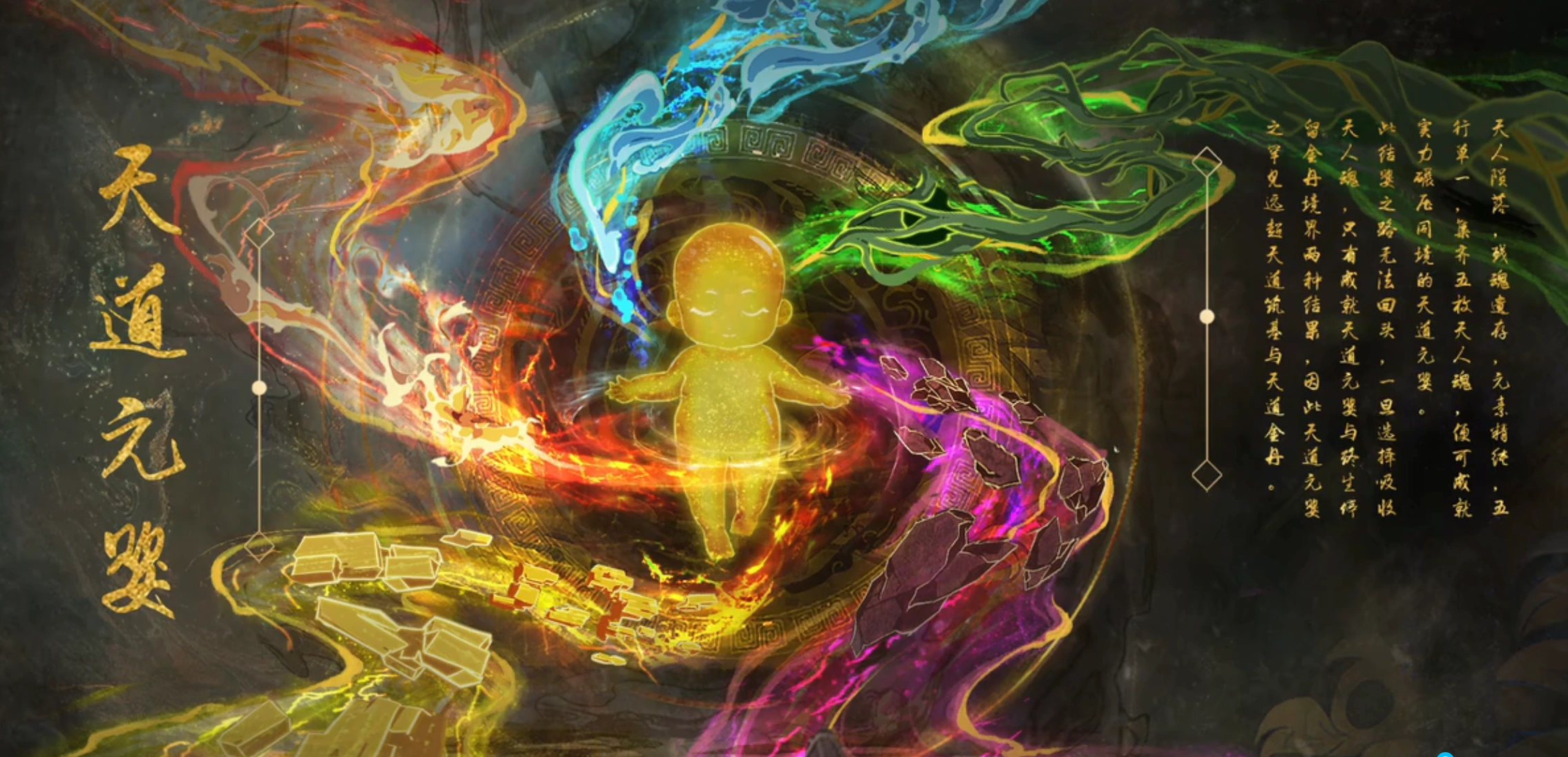 - Nascent Soul Formation via the Earth-Dao, needs the Five Elemental Heavenly Beast Souls, each one is comparable to a Ferocious Beast of the Deva realm.